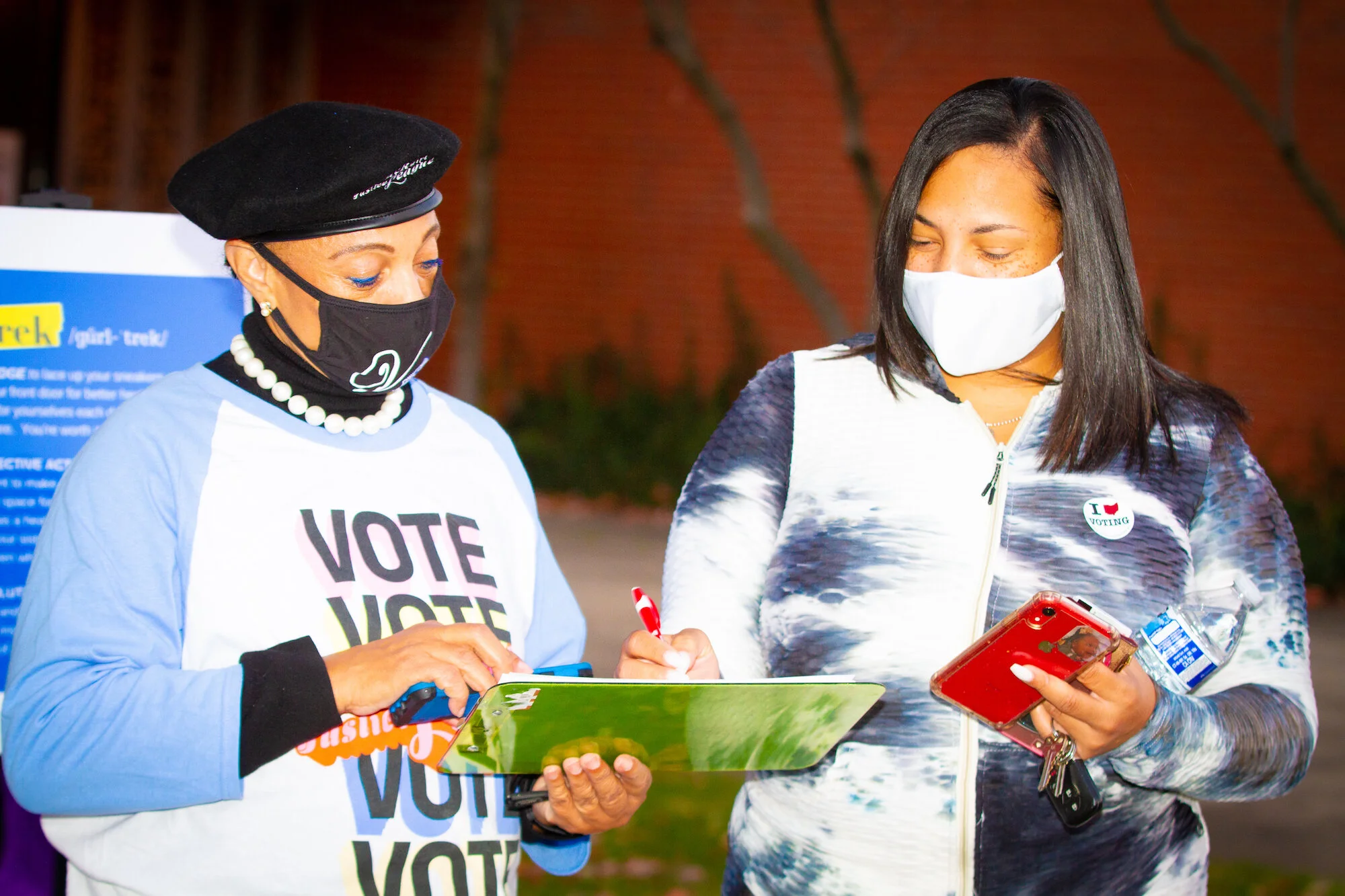 GirlTrek’s Black Girl Justice League was front and center on Election Day showing up around the country especially in battleground states like Georgia, Pennsylvania and Ohio supporting voters with water, healthy snacks and encouragement.